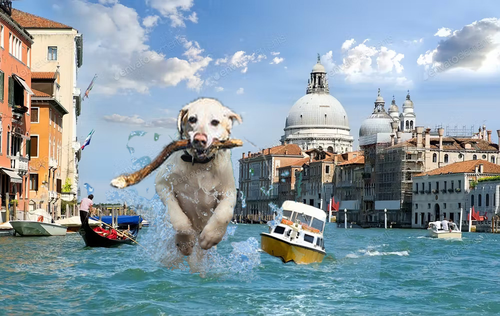 水上を走る ワンちゃん